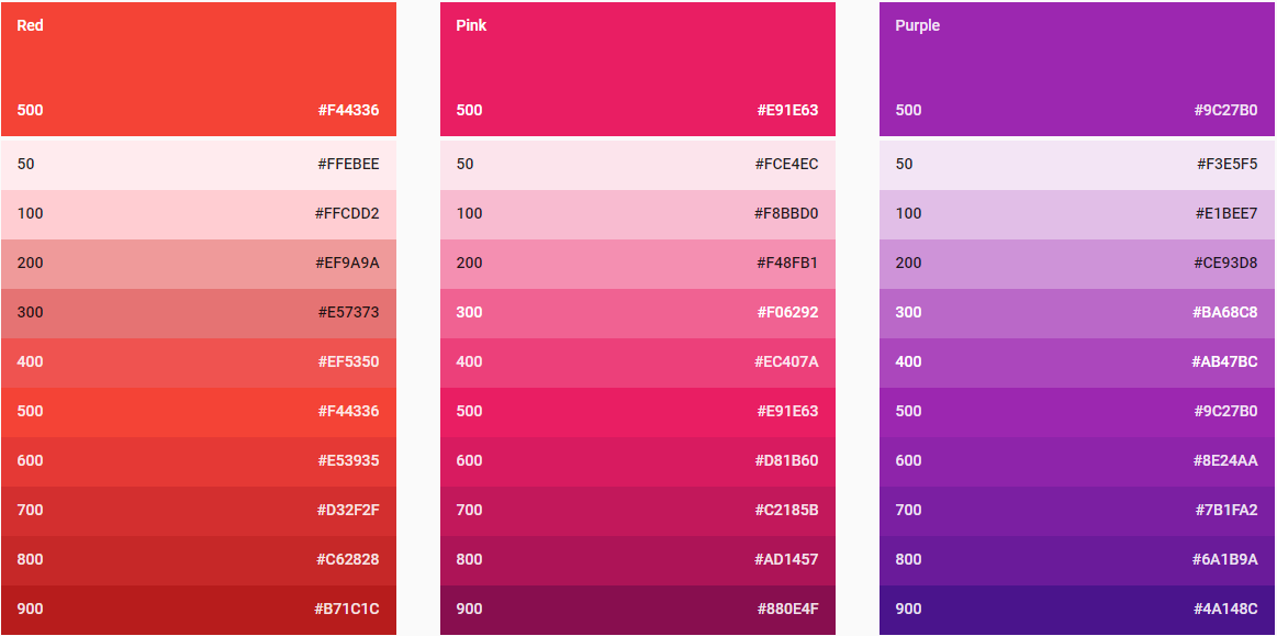 Red is the color of life, and red logos are passionate, vivid, and powerful. A single color within the palette is made up of a hue such as red, and shade, such as 500. Red and purple palettes with color ideas for decoration your house, wedding, hair or even nails. This is further broken down into two distinct categories: We also wrote on similar subjects like websites with a yellow color palette, calm color palette, blue websites, red websites, pink websites, orange websites, and social media colors.